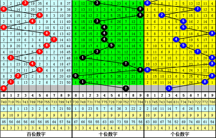 三、体彩摆列三前9周星期四奖号分裂开出:830-509-202-255-613-788-179-330-655,其中号码012路比为12:4:11,奇偶比为15:12,大小比为14:13;